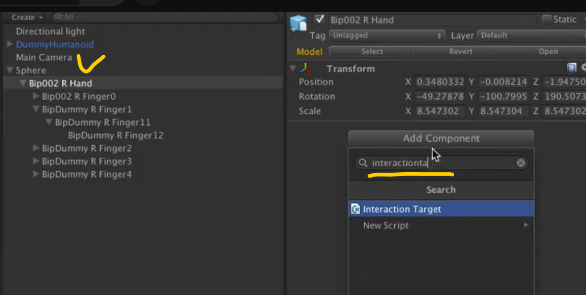 애니메이션의 정확도를 위해, Final IK에서 제공하는 컴포넌트(Interaction Target)를 추가해야 한다. 간단하니까 잘 따라해보장