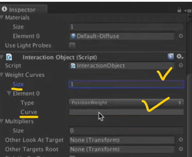 즉, 이 Interaction Object가 아바타의 Full Biped IK에 영향을 주는 정도를 그래프로 지정할 수 있는 것이다.